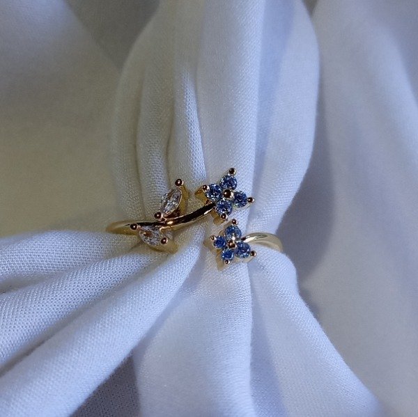 Anillo de cobre enchapado en oro con zirconitas de distintos colores. Los colores pueden variar por la resolución de la pantalla.