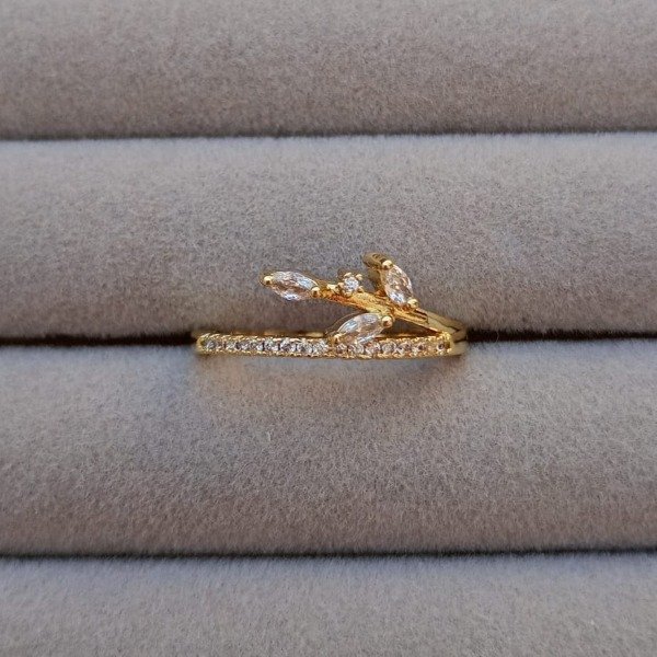 Anillo de cobre enchapado en oro con zirconitas de distintos colores. Los colores pueden variar por la resolución de la pantalla.